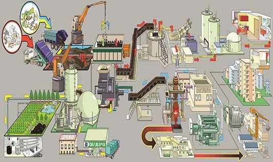 京环分质协同处理技术是针对我国城镇生活固废含水率高、宜生化组分多的特点,创新性的采用挤压 分离分选等技术手段,将其分离分选为宜生化组分、宜燃组分和无机组分,宜生化组分采用生化处理,用于产 沼制肥;宜燃组分采用热处理,用于焚烧发电或气化产生合成气产品;  无机组分用来制建筑材料或填埋,实现了城镇生活固废(生活垃圾、粪便、餐厨垃圾、市政污泥等)的无害化和物尽其用。对城镇生活固废(生活垃圾、粪便、餐厨垃圾、市政污泥等)进行分质协同处理和能量梯级利用, 最大限度地实现了固废处理的协同化和园区化,有效克服了全量焚烧和全量填埋的局限性,符合可持续发展原则。